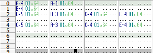 Now click into the upper left corner of the "spreadsheet" to focus it. At this point, your computer keyboard is essentially a piano. Almost every key on your keyboard will drop a different note into the tracker.