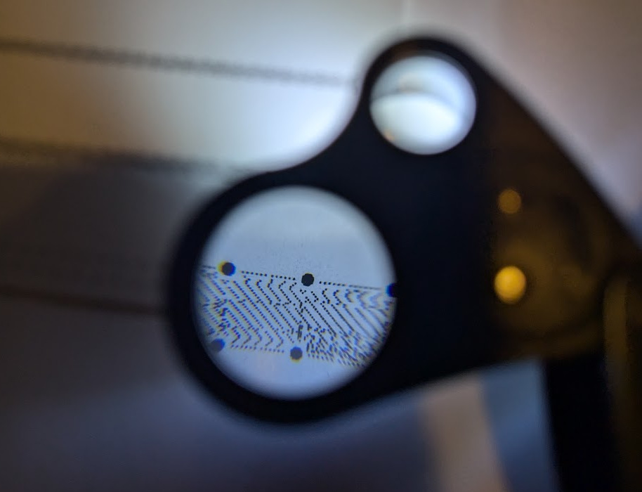 After a print is done, pull out your loupe and compare the dots in the print to an official E-Reader card. They should look very similar. The dots should be solid and pure black, like the image above.